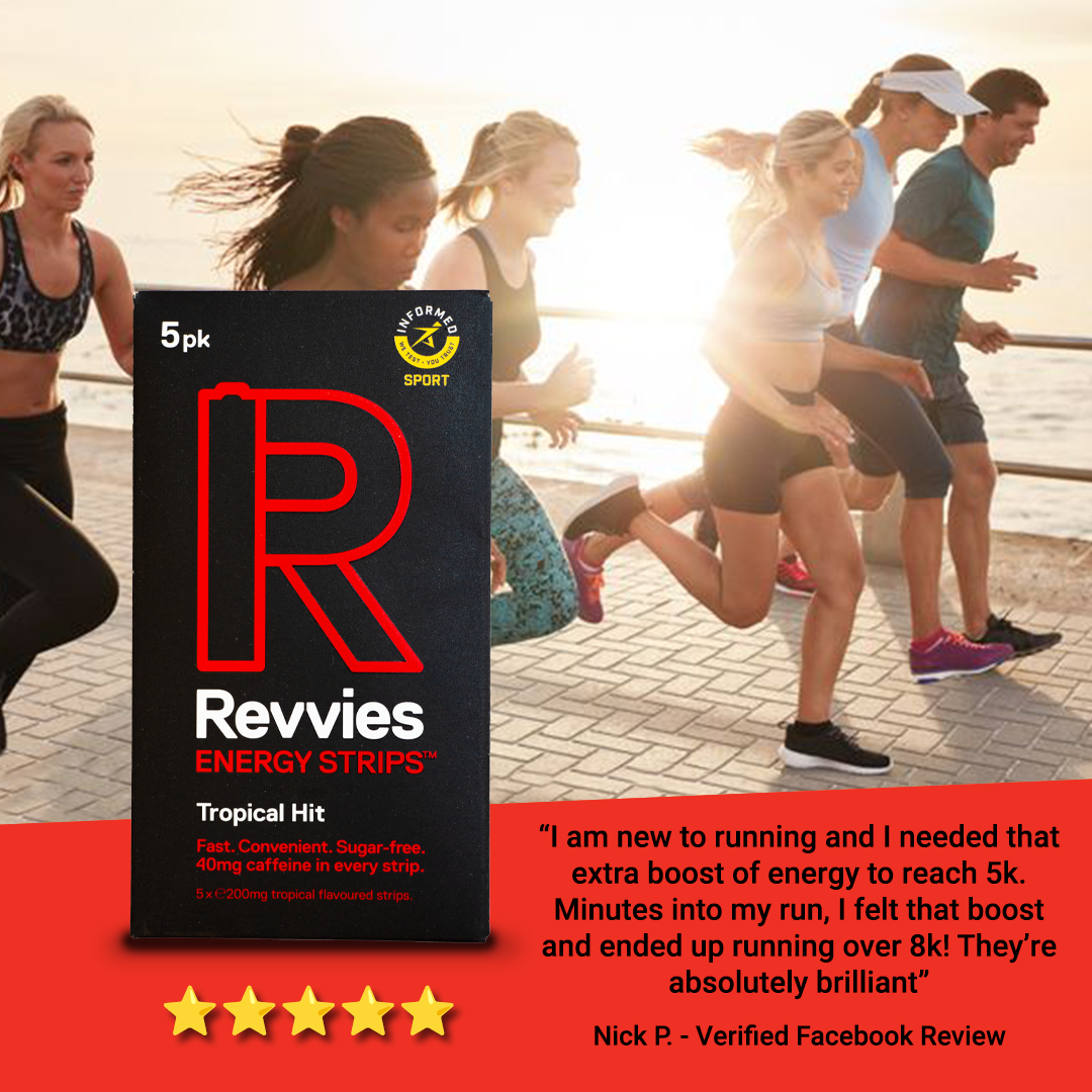 Because Revvies can be taken without water, they are perfect for runners, triathletes and sports people from all codes, providing a fast, safe and consistent source of caffeine that can be taken immediately before exercise or whilst on the go. This also makes Revvies great for anyone that doesn't have time to stop for a coffee during a busy day.